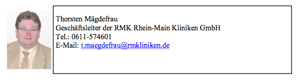 aus seinem Familienkreis konnte jemand Auskunft geben.Und nun erfahre ich das er Geschäftsführer der RMK Rhein-Main Kliniken GmbH ist.