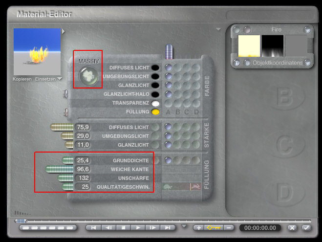 1.) Die Materialeinstellungen des Feuers