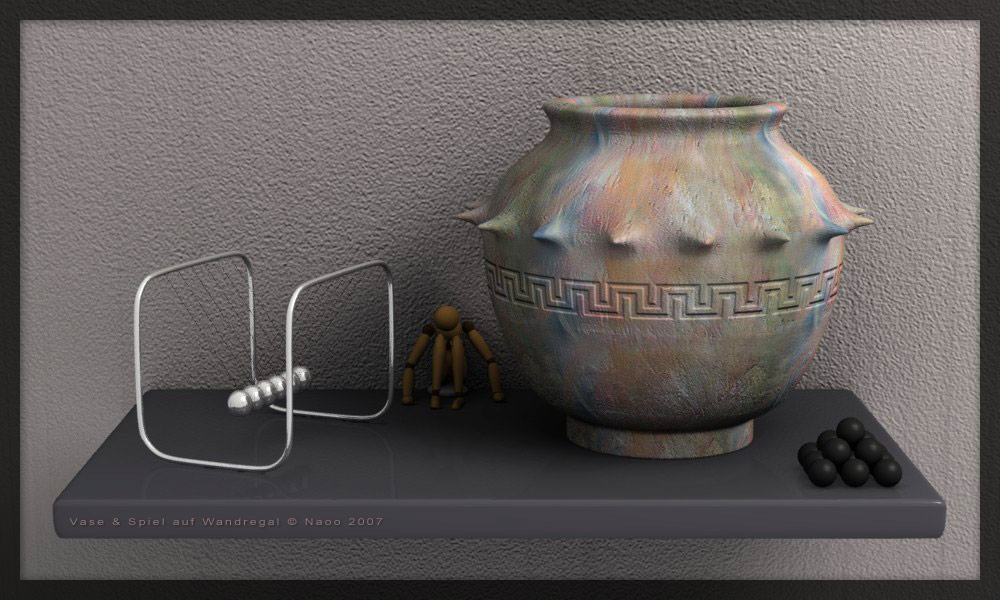Vase & Spiel auf Wandregal