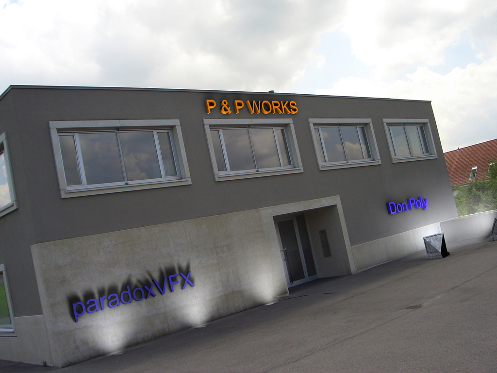 Das Gebäude+Hintergrund ist ein Foto, das Ganze ist ein Compositing (2D mit 3D vermischt)