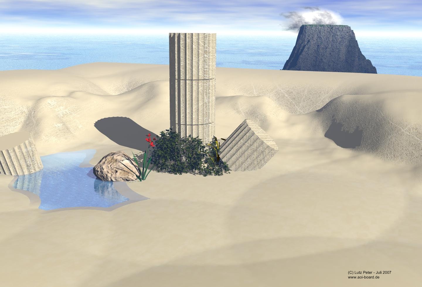 Das grüne dachte ich passt besser zu dem bisschen Wasser was daneben ist. So als einziges Lebenspendes Element. Aber ich kann das ja mal probieren.