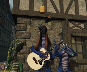 Dragobert haben plötzlich Nostalgiegefühle heimgesucht. Er hat seine alte Gitarre aus dem Keller gekramt, ein Perücke aufgezogen (die eigentlich dem M3 gehört :P) und wandert nun als Straßenmusikant durch die Stadt. Zum Leidwesen der Anwohner