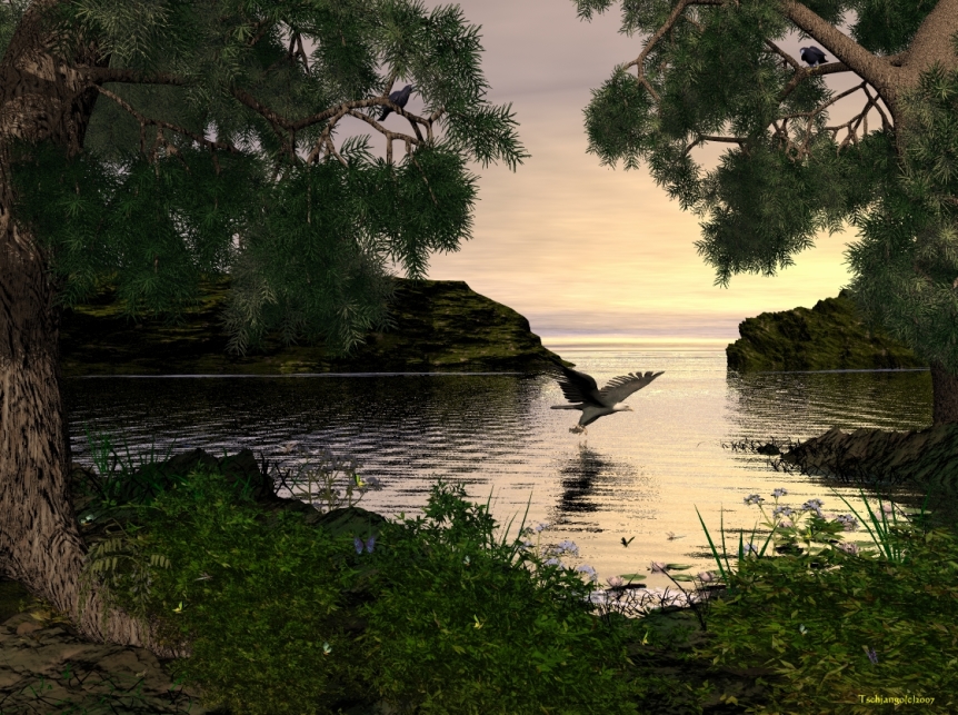 Wunderschöne Szene mit vielen kleinen Details (Pflanzen und fliegende Inseskten im Vordergrund), die das Bild sehr authentisch machen!