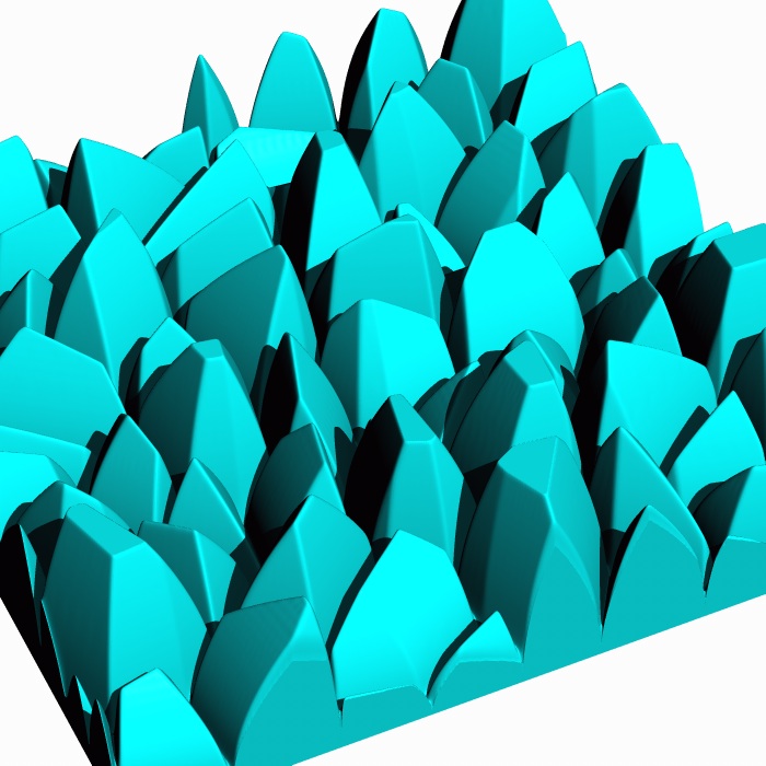 2. Deine Vorlage ist genau so kantig wie das Ergebnis. Da führt die Bryce-interne Smoothingfunktion sehr wahrscheinlich eh nicht zu Deinem erwünschten Ergebnis. Öffne Dein Bild in einem Bildbearbeitungsprogramm und maskiere die dunklen Zwischenstege zwischen den "Kacheln" mit etwa null bis zwei Prozent Toleranz. Dann kehre die Maskierung um und lege Gauss`schen Weichzeichner auf die gesamte maskierte Fläche. Ein Wert von etwa 0,5 Pixeln Toleranz dürfte hier ok sein. Wende die Funktion mehrfach nacheinander an und beobachte wie die Kanten innerhalb der Auswahl nach und nach smoother werden.