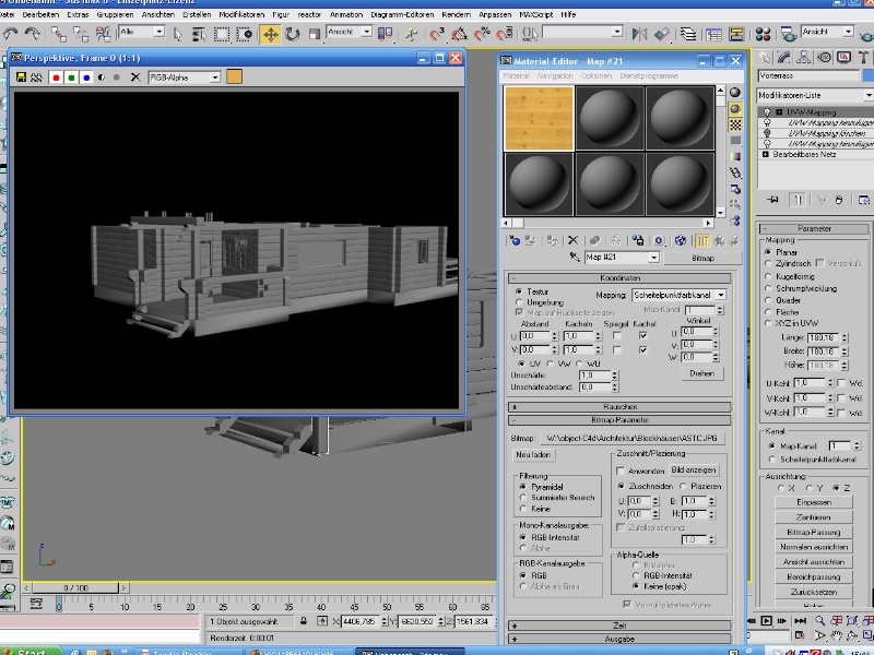 Ich habe für nen Kumpel (ist einer von denen,die denken,das HB lesen,dann kann ich in Hollywood anfangen)in C4d ein Blockhaus gebaut.Mir war ja auch schon von anfang an klar,dass ich die C4d tex nicht nutzen kann,also habe ich "jpg's" genommen.