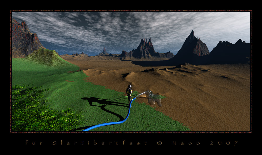 nehme mal an das das männchen mit seinen schlauch die kahle landmasse rekultiiviert.......idee und umsetzung sind super