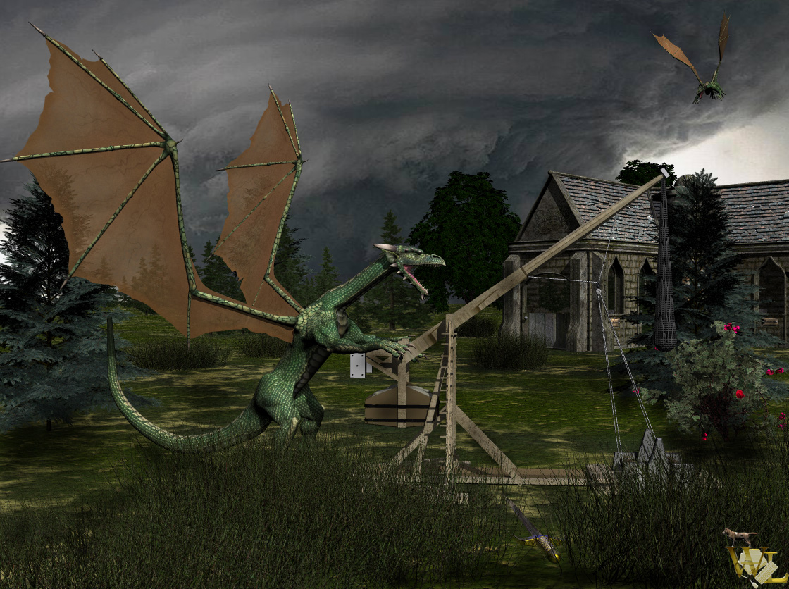 Nun ja, das Katapult ist natürlich ein reines Fantasieprodukt. Ob es überhaupt bei der Drachenabwehr von Nutzen war?