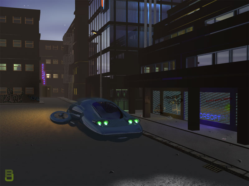 Kommt gut, das Auto. Auch der Hintergrund, so'n bisschen Blade Runner in der Vorstadt...