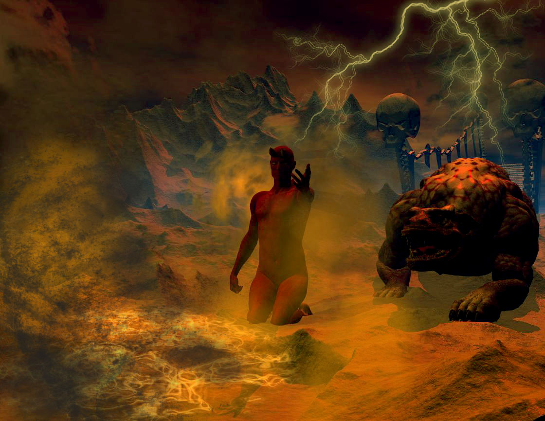 Sieht cool..ähh..ich meine, heiß aus! Tolle Atmosphäre! Nur: Seit wann kniet der Teufel vor neuen Besuchern nieder? ![]()