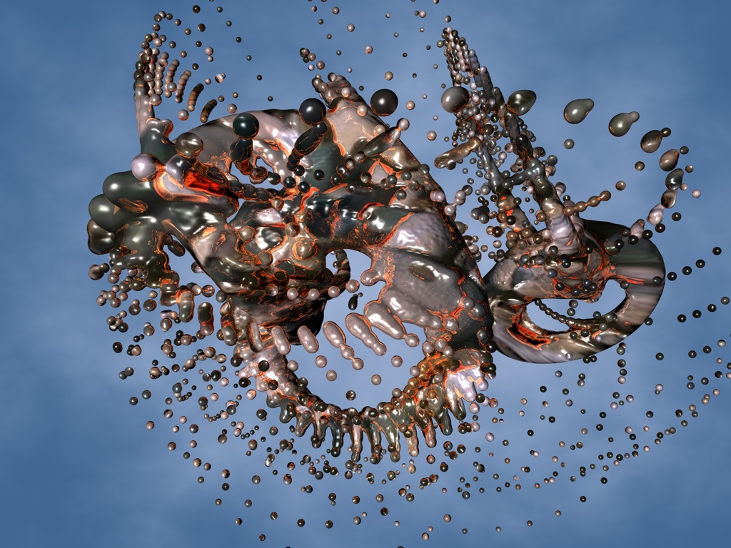 Sieht aus wie ein Chaosfraktal, die Farben sind sehr schön gelungen.