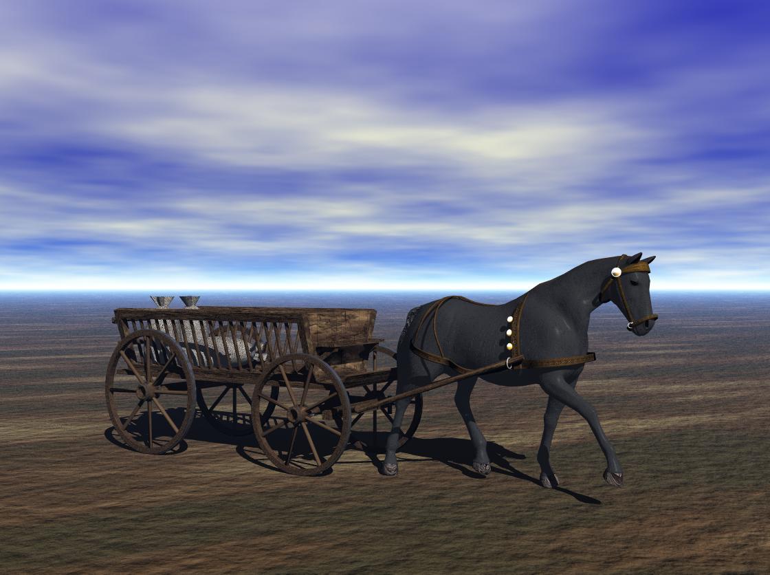für eine weitere mittelalterliche Scene brauchte ich einen Leiterwagen. Den habe ich mir schließlich in Bryce zusammengeschraubt.