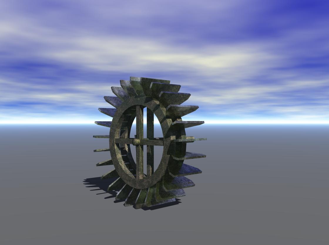 Dazu habe ich das Schaufelrad in Cinema gemodellt. In Bryce arbeite ich nun an der Texturierung.