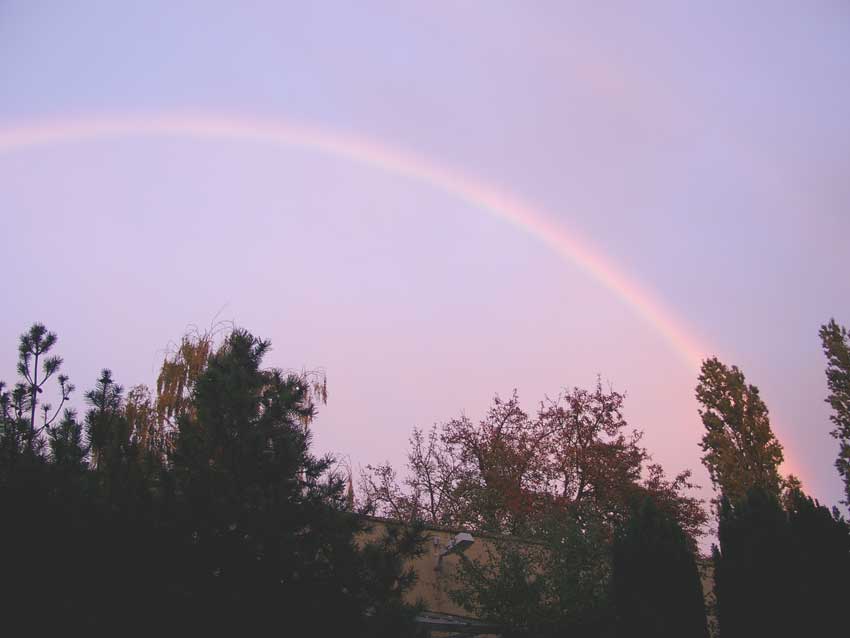Gerade eben noch rechtzeitig gesehen um ihn im Bilde festzuhalten: ein seltener Regenbogen vor so gut wie wolkenfreiem Himmel!
