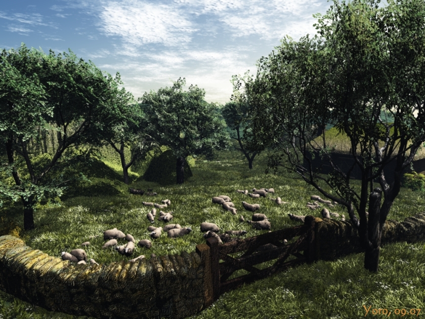 @Contra: Die Beleuchtung war gar nicht so schlimm, ich habe einen Standardhimmel ein bißchen verändert (einfach ausprobiert; wie das alles genau funzt, blicke ich noch nicht) und dann noch ein Richtungslicht gesetzt, weil sonst der Vordergrund ziemlich im Dunkeln geblieben wäre. Und der neue PC macht echt tierisch Spaß!