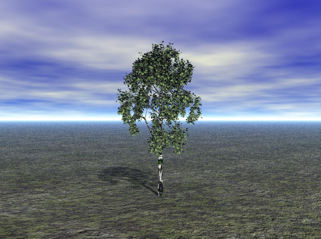 Der Baum ist einer meiner verzweifelten Versuche eine halbwegs realistische Birke mit dem Baumeditor zu erreichen, (siehe Bild).