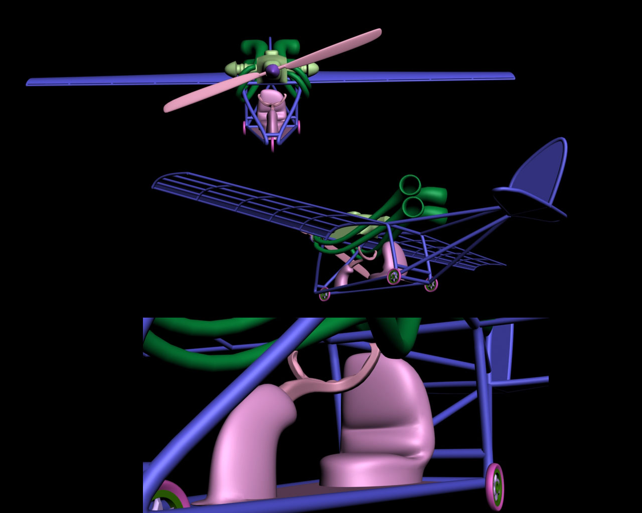 ich denke ich habe mit dem Modellieren abgeschlossen. Die Tragflächen sind bespannt (auch wenn sie nicht ganz passen mögen, die sollen eh danach leicht transparent werden, damit man das Gerüst darunter sieht.