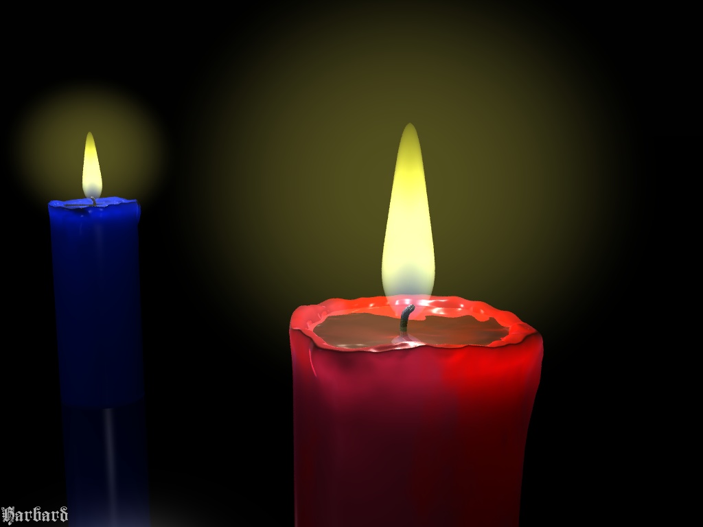 Bei der ganz linken Kerze würd ich die beiden dunklen Laufspuren etwas heller machen und eine davon deutlich verzerren / länger ziehen. Dann fällt es nicht mehr so auf dass es sich um ein Duplikat der ersten handelt...