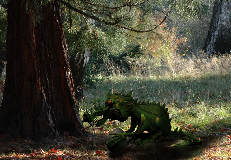 Deinen Drache hast Du zwar sehr gut in die Landschaft eingearbeitet ![]()