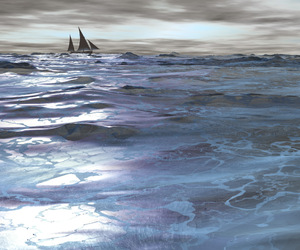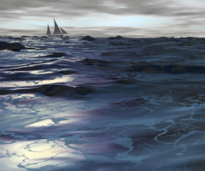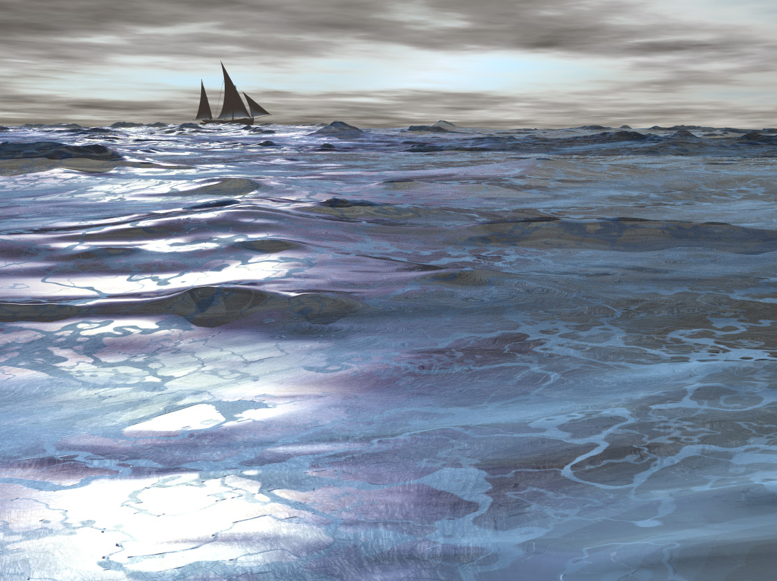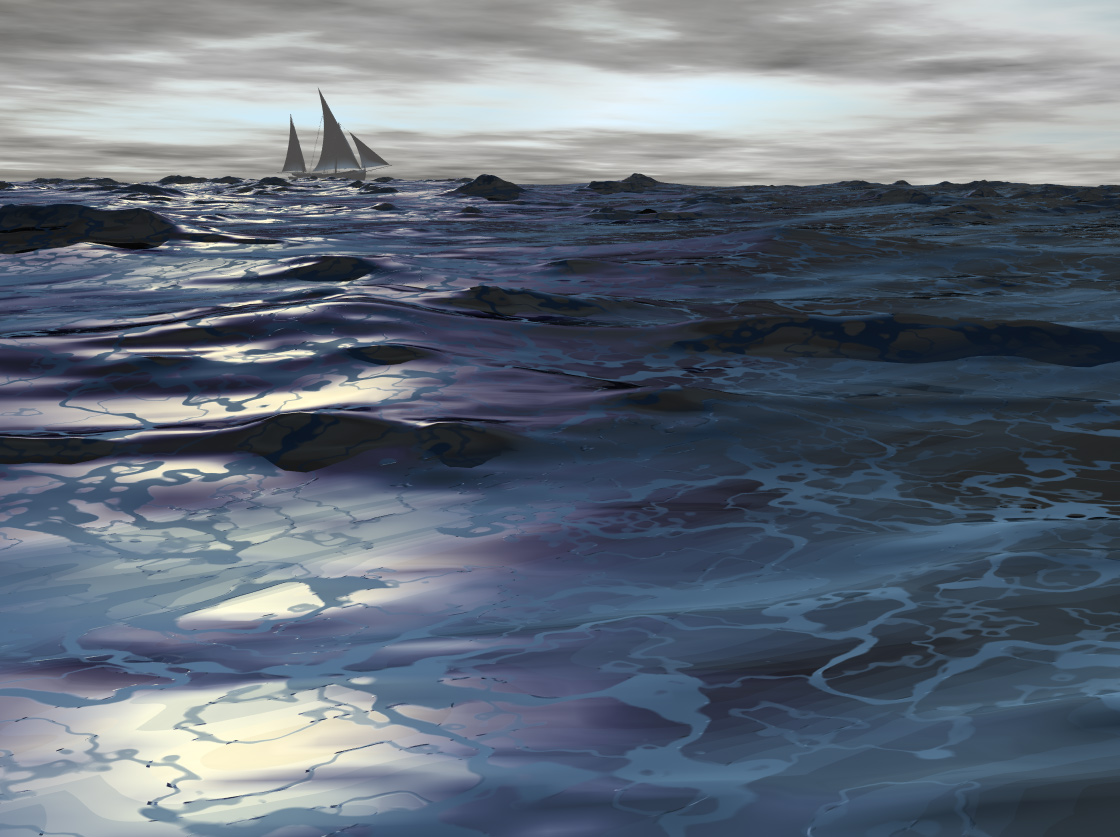 Die Form der Wellen und die Perspektive allgemein finde ich sehr gut, nur mit dem Material bin ich nicht glücklich. Es sieht nicht wie Wasser aus, eher wie geschmolzenes Plastik