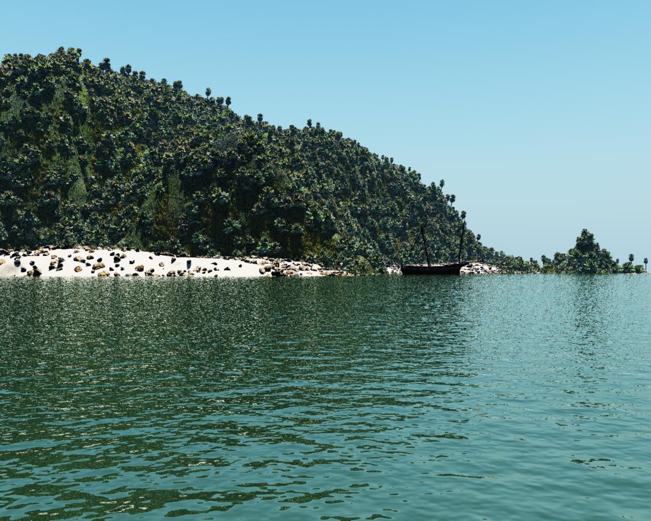 Die Vegetation und den Berg find ich gut so! Auch das Wasser und das Schiff! ![]()
