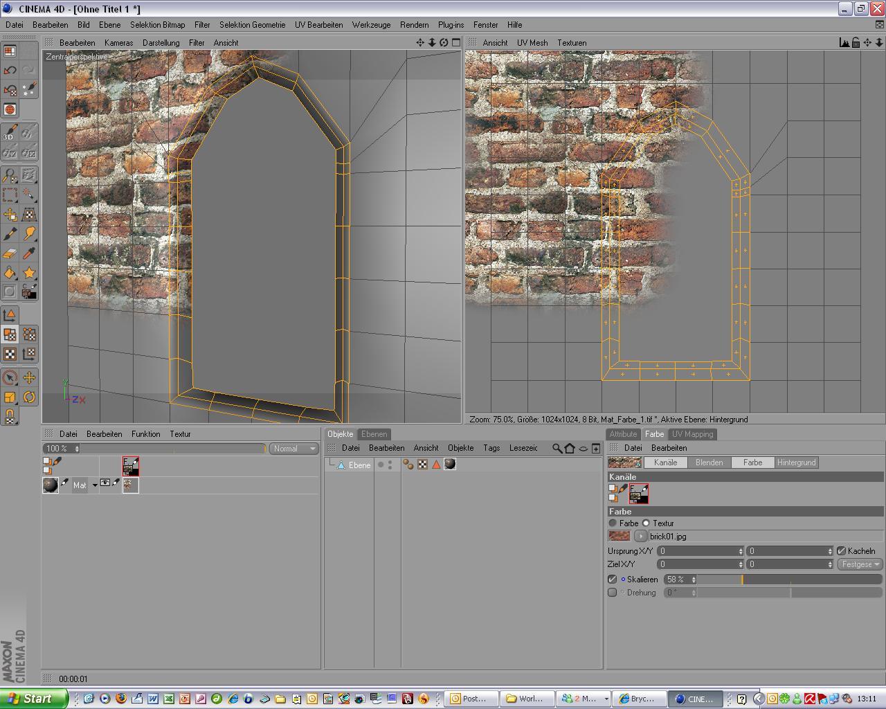 Da das Häusschen für ein Spiel noch zu Low ist, wollte ich noch nachträglich eine Abkantungen durchführen, aber die UVs passen danach überhaupt nicht mehr und einen schönen Textur-Übergang gibt es nicht.