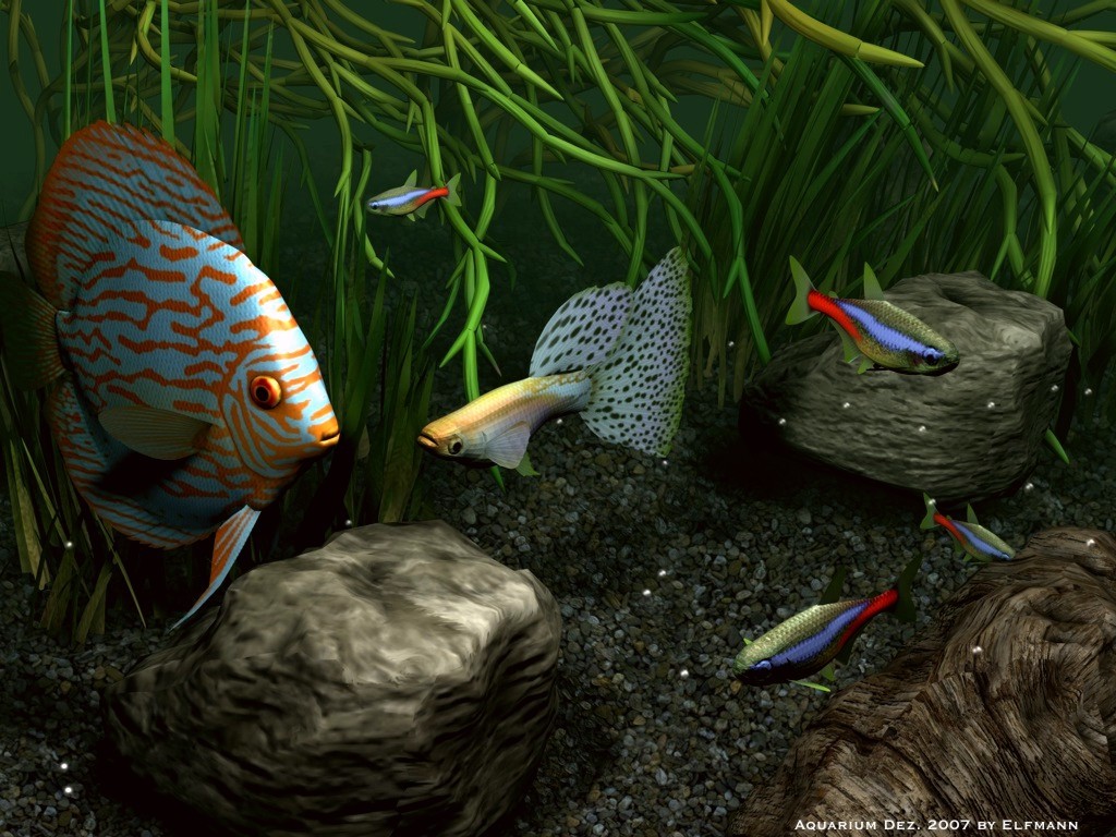 Ich meine nur, daß man vom Wasser zuwenig sieht, es ist zu klar. Wenn die Fische nicht wären, könnte es auch eine Landszene sein. Vielleicht etwas Dunst draufgeben, die eine oder andere Luftblase und auch Caustics einbauen, damit es mehr wie ein Aquarium wirkt.