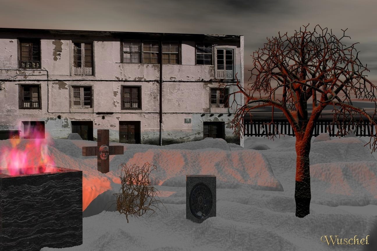 Beim Kreuz und beim Grabstein ist es doch relativ einfach Schneebelag einzubringen. Du skalierst einfach ein paar abgeflachte Terrains auf die Größe der Flächen und plazierst sie.