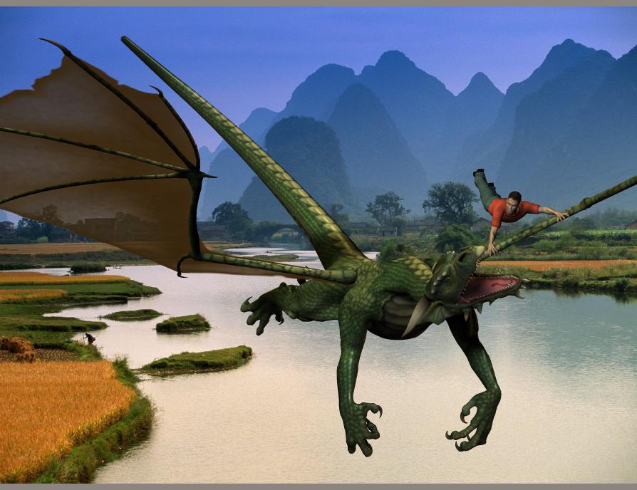 Ich wollte eigentlich dass der Mann auf dem Drachen sitzt, aber das bekomme ich nicht hin.