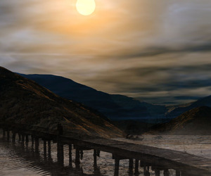 Was noch zu verbessern wäre: Die Landschaft erscheint etwas zu kahl, das Boot passt grössenmässig irgendwie nicht so recht, liegt/schwebt etwas eigenartig am Ufer. Vielleicht würde eine Bearbeitung der Terraintextur was bringen .... Die Sonne sollte unschärfer begrenzt und kleiner sein, wäre realistischer (Grosse Sonne = Extremer Tele-Effekt, der aber im Bild ansonsten nicht vorhanden ist, eher WW ...)