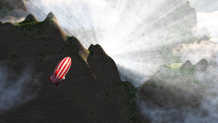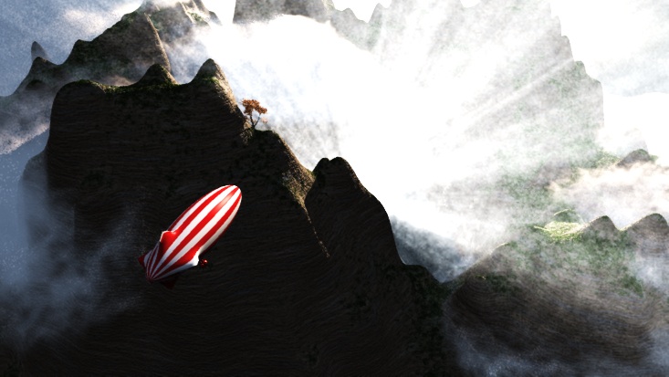 also: erstmal find ich das rechte besser (das erste überstrahlt m.E. zu sehr), weiterhin beisst sich für mein Empfinden der eher comichafte Zeppelin dann doch zu sehr mit der wunderbaren Landschaft und ihrem mystischen Leuchten. Zumindest würd ich mal versuchsweise ne andere Textur da drauf legen...