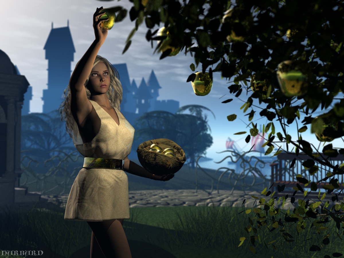 Eine nette Idee. Aber am Licht solltest du vielleicht noch was ändern, die Schatten sind sehr schwarz. Es wäre auch schön, wenn ihr Gesicht besser ausgeleuchtet wäre. ![]()