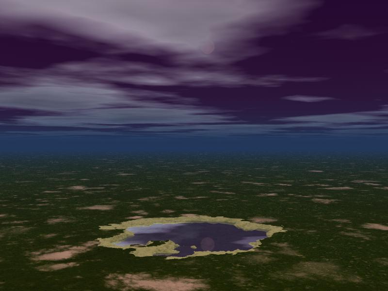 Der geboolte See im ersten Bild wirkt als Distanz-Eindruck schon recht glaubhaft auf Grund der von Dir gewählten Textur. Der Himmel sieht nach zusätzlicher Wolkenebene aus