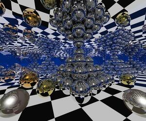 hab mal spiegelnde Metallkugeln in ein Spiegelkabinett gestellt.