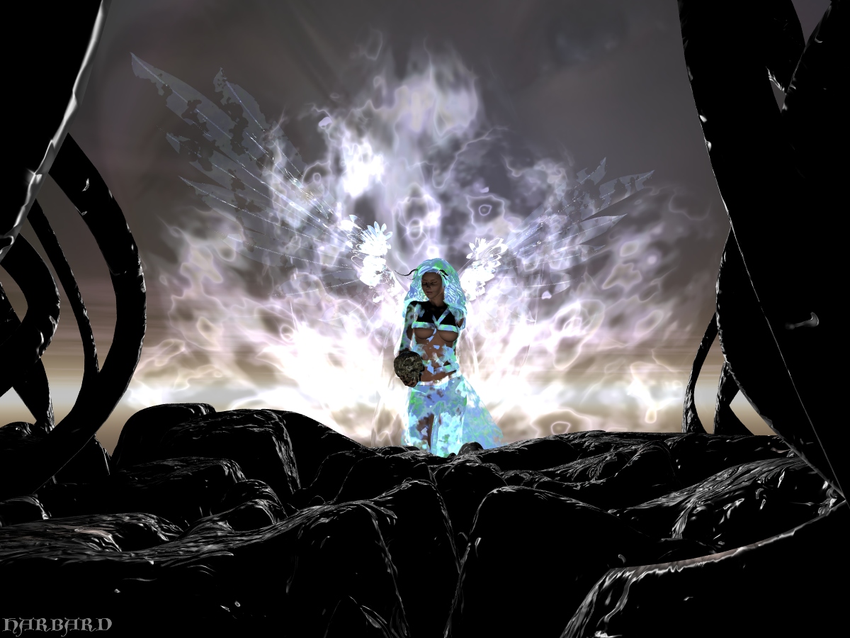 Das erste Bild hat eine besondere Athmosphäre. Die geistähnlichen Schwingen sehen prachtvoll aus. Alleine das Gestein im Vordergrund erscheint etwas