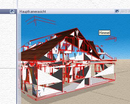• Ja, ich hab alles ausgewählt, außer natürlich Kamera und sowas. Warum das beim Dach so ist, weiß ich auch nicht. Das Dach hab ich aus 2 Planen erstellt und die dann zu einem Objekt gemacht, und das Face an der "Schnittstelle" hab ich gelöscht, wäre ja sonst ins Zimmer reingegangen.
