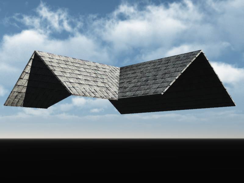 Nur krieg ich das linke Dach einfach nicht richtig, hab die Textur miteinander gemischt und mit den verschiedenen Einstellungen (Einfluss der Umgebung) experimentiert. Aber die Textur bleibt einfach an der "Schnittstelle" zum rechten Dach verdreht. Ich probier jetzt schon geschlagene 2 Stunden!! und krieg es einfach nicht hin. Weiss vielleicht von Euch jemand ne Lösung? Hab mal ein Testrender vom Dach angehängt, damit ihr wisst, was ich meine.