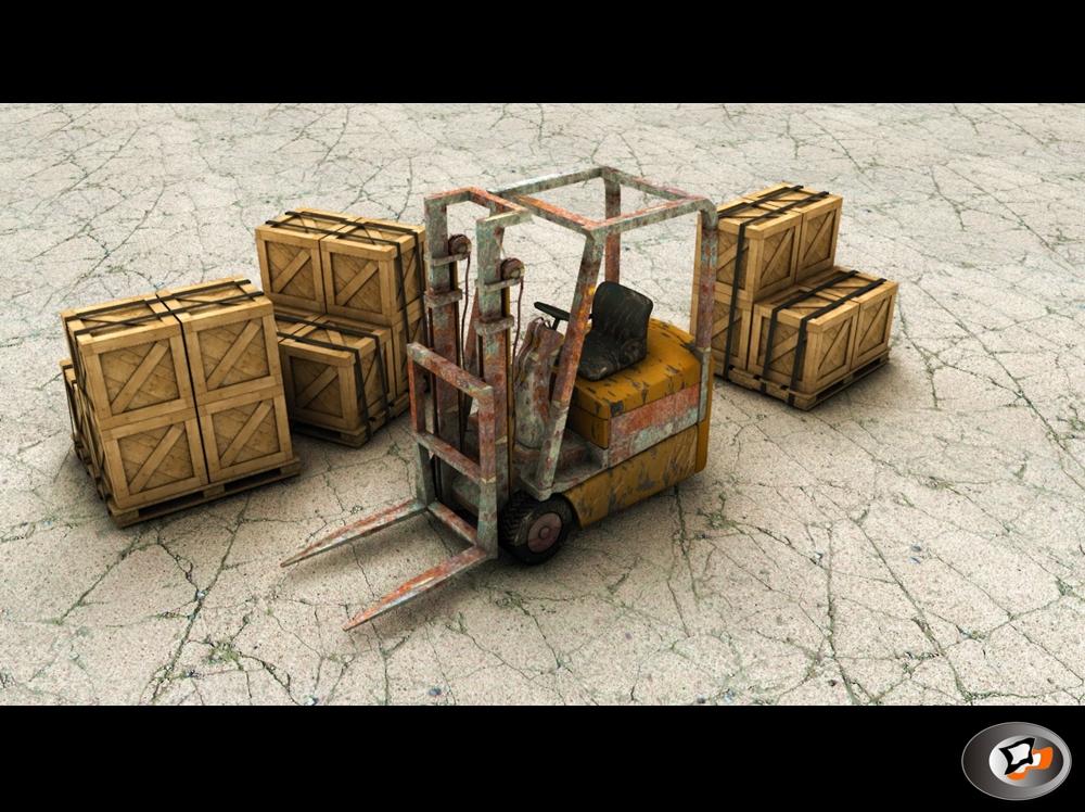 die Kisten und auch die Paletten sind genial! Im Vergleich zu dem schon ziemlich ramponierten Gabelstapler wirken sie eigentlich etwas zu neu - aber was solls, das ganze Modelling finde ich super!