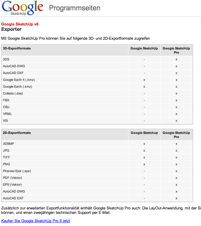 Das funktioniert über einen Umweg:ZitatUnd auch für Google SketchUP (free) und SketchUP pro ist die notwendige Schnittstelle zu