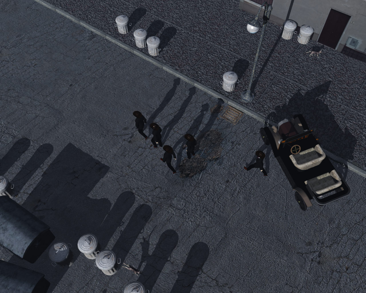 Nur müssen die hier höllisch aufpassen dass sie nicht in den Gully am Straßenrand fallen. Oder du machst die Mülltonnen einen Hauch kleiner.