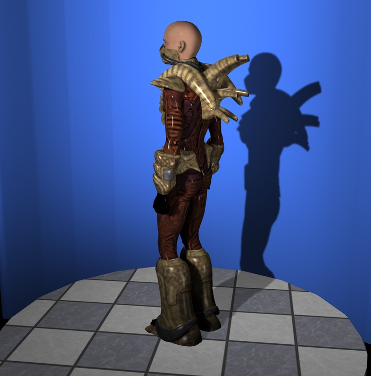Och kommt - Soooo schlimm ist es jetzt auch wieder nicht. Ich denke da kann man auch noch einiges zurechtbiegen - die Stiefel etwas skalieren und den Stacheln mit dem D-Form Tool zu leibe rücken... Dann könnte man ihn wirklich in einer SF-Szene einsetzen - denke ich.