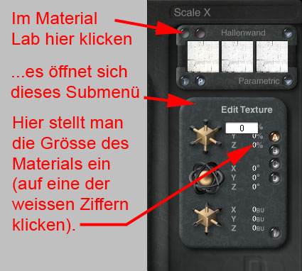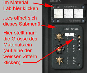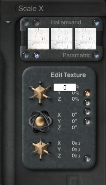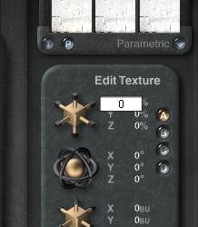 oder durch Ändern von Grösse, Richtungsverlauf etc. (Bild2) - dort auf die weissen Ziffern klicken und Wert eingeben. Die Wirkungsweise ist wie im Edit-Menü des Arbeitsfensters (oben = skalieren, Mitte = drehen, unten = zurechtrücken...)