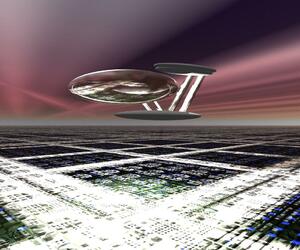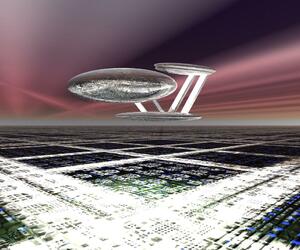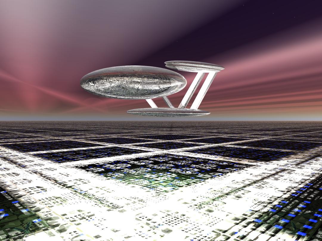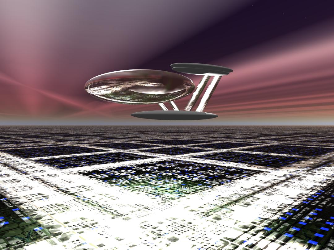 Himmel und Untergrund kommen SciFi-mässig gut! Dem Schiff würd ich aber ne andere Textur geben...