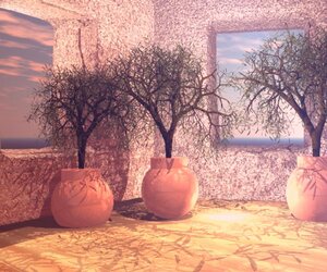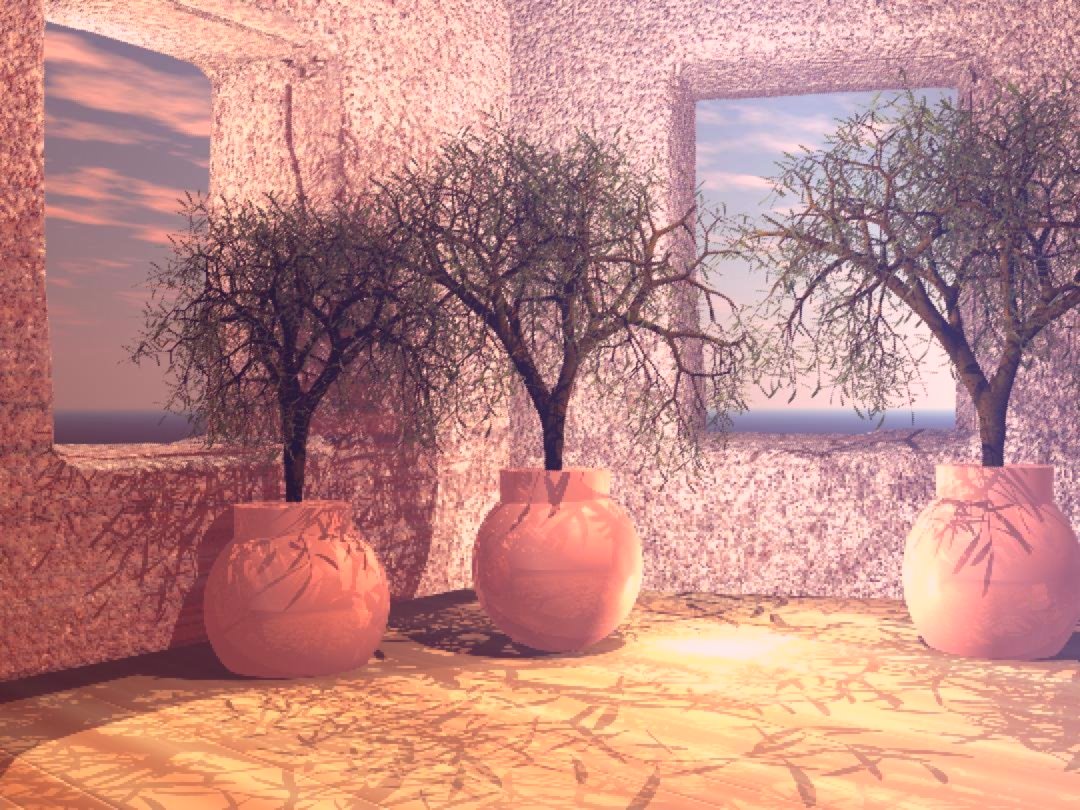 Stimmt, ich hab´s nicht fertiggerendert, weil ich das Notebook ausschalten wollte. Ich habe dieses Bild bestimmt 5 mal unterbrochen, weil die Wurzeln ducrch die Töpfe kamen, in der kleinen Vorschau kann man das ja nicht so gut sehen, dann war ein Topf halb in der Wand verschwunden....