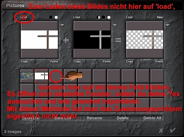 ...kenne ich. Ist manchmal so dass der Textur Editor versucht mit der neu hinzugefügten Bildtextur die TexLibrary zu aktualisieren, aber wenn man das nicht explizit macht (also die Textur per Speichern als solche der Bibliothek hinzuzufügen) - und nur das eben importierte Bild im Editorfenster hat - und dann per Häkchen bestätigt und zurück ins Arbeitsfenster geht, kann es sogar sein dass die textur gar nicht gezeigt wird, oder Du das Standard-Leonardo-Männchen angezeigt bekommst.