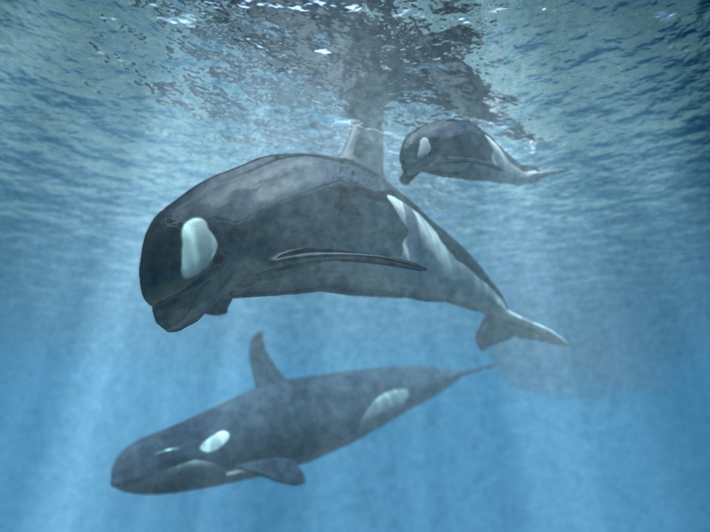 Die beiden vorderen Wale (das Weibchen mit Jungtier) sind gemorphte Delphine.Schnauze nach hinten, das Maul etwas breiter, die Finne etwas nach oben gezogen, die Textur ein wenig meinen Bedürfnissen angepasst, und schon hat man seine Sammlung um ein paar Objekte bereichert.