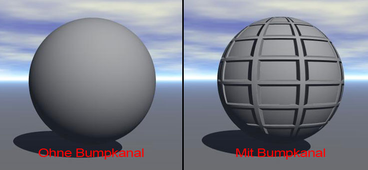 Wie Hollywood4711 schon gezeigt hat stellst Du die räumliche Tiefenwirkung (Bump) eines Materials ein indem Du neben dem entsprechenden Regler in die kleine Mulde klickst. Der glatten Materialoberfläche wird dabei ein Struktureffekt hinzugefügt der einen räumlichen Tiefeneindruck erzeugt, obwohl das Modell / Objekt selbst keine echte 3D Struktur an der Oberfläche hat.