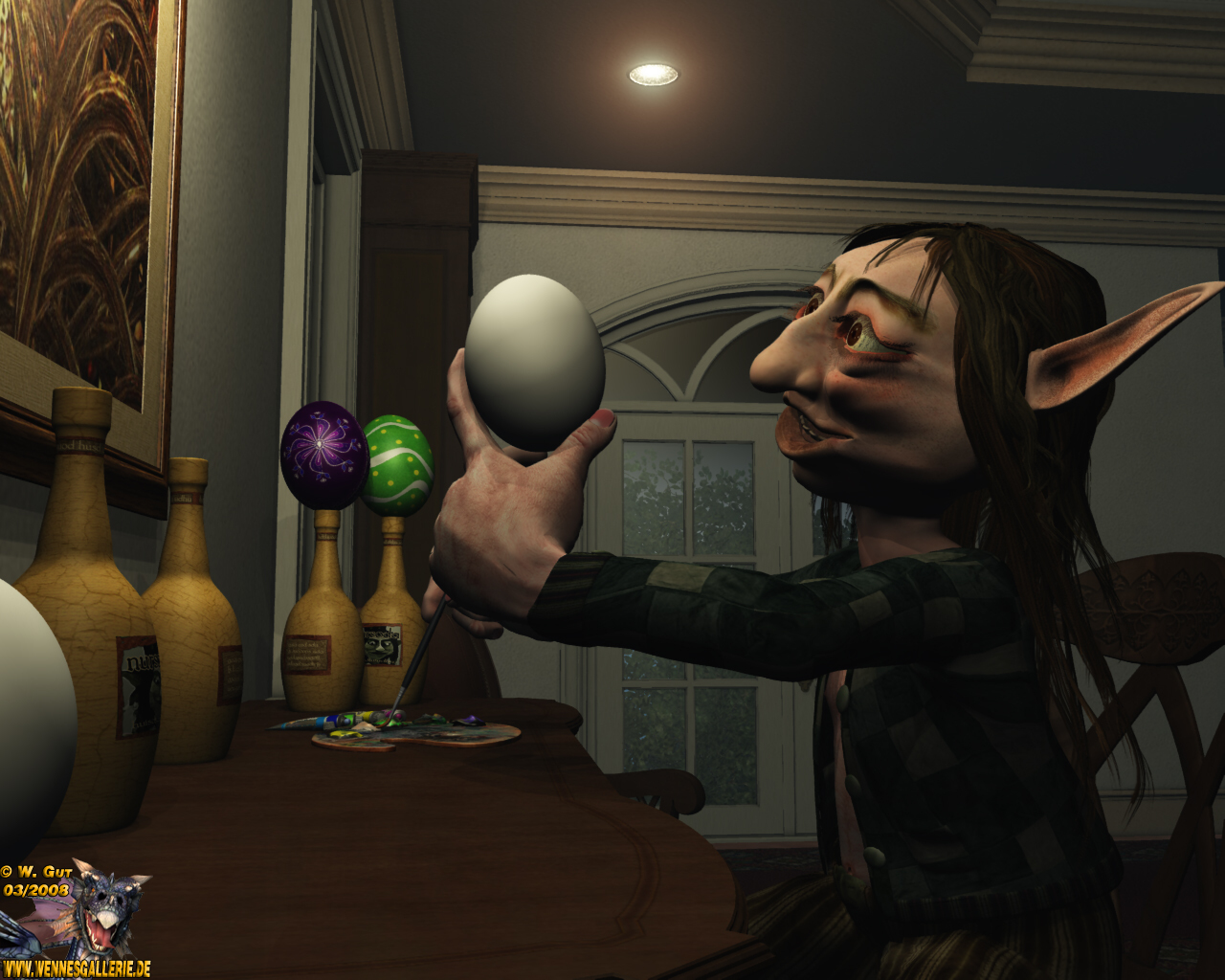 Das ist ja direkt ein fürstlicher Arbeitsplatz, allerdings ist das abstellen der bemalten Eier recht riskant.