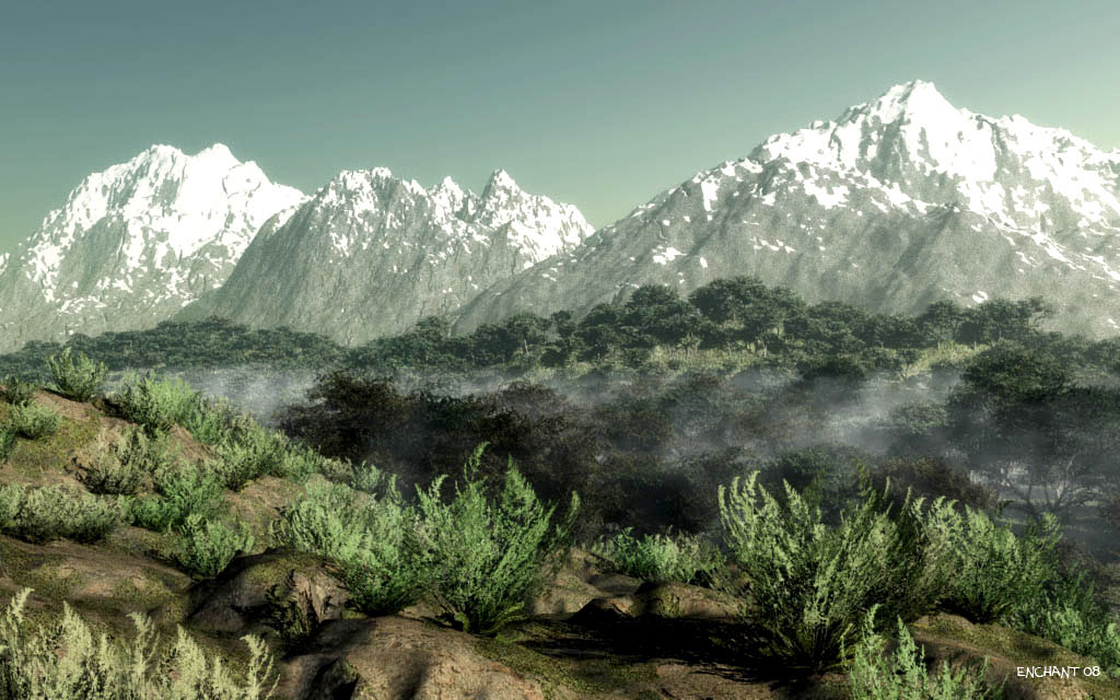 Noch einige Anregungen: Das Gebirge im Hintergrund etwas flacher und den Dunst verstärken könnte den Eindruck von Weite noch verstärken. Das Gelände im Vordergrund (Büsche) könnte etwas abwechslungsreicher sein, vielleicht noch ein paar Felsen Gras dazu, am besten etwas, das als Grössenmasstab dienen kann. Spannung erzeugen könnte etwas markantes im Vordergrund, z. B. re. vorne .... ein Tierchen, Fels .... .