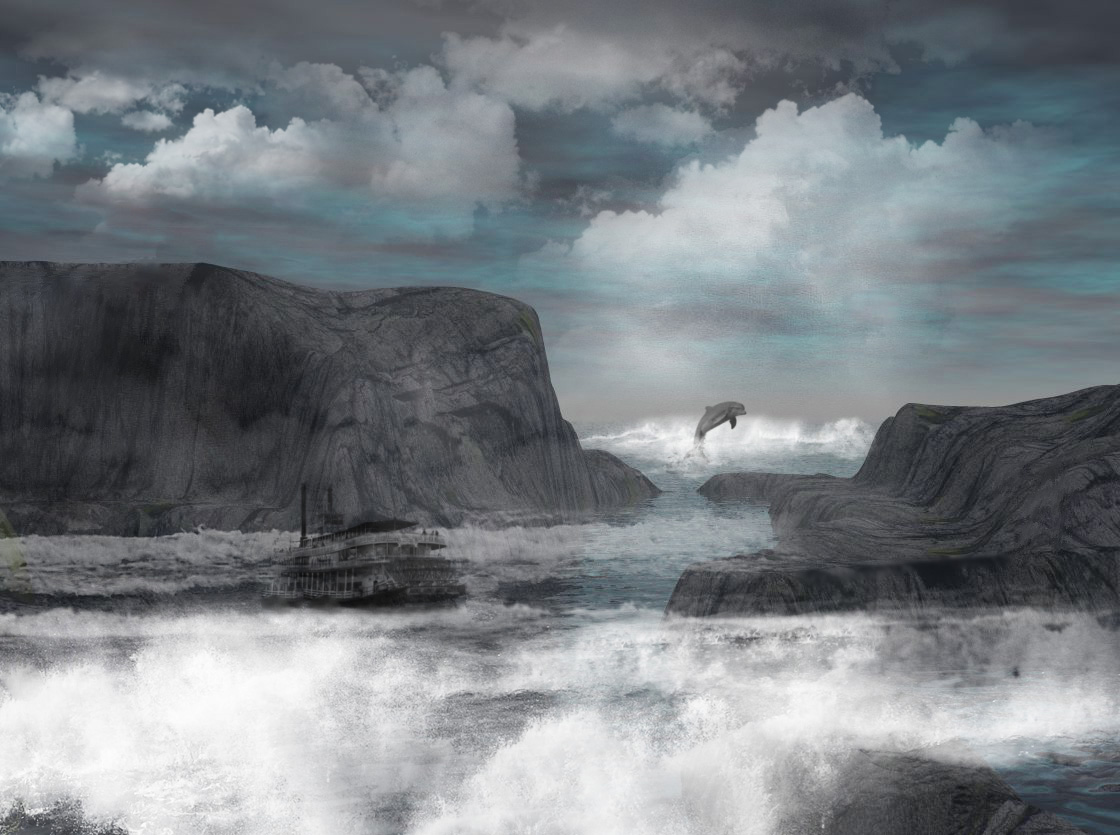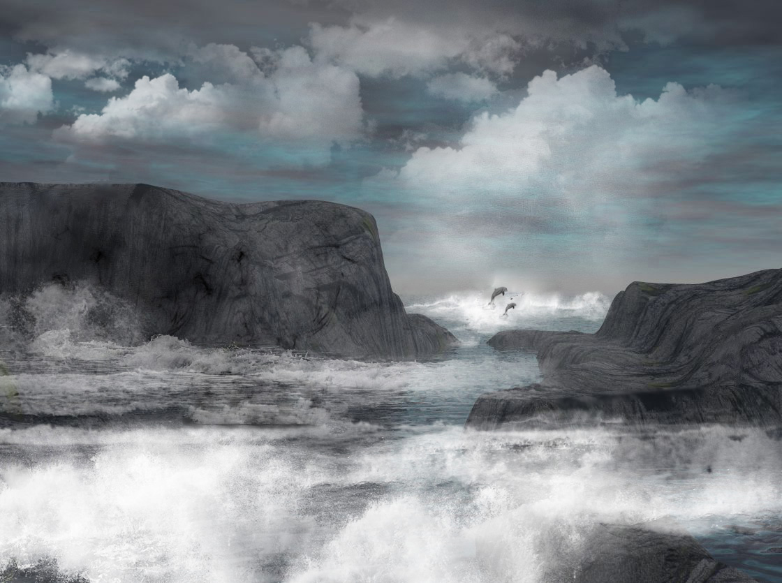 Aaaaaaalsooooooo , ich hab das Bild noch mal überarbeitet , ich finde irgendwie passte das Schiff da nicht so hinein , darum hab ich es kurzerhand entfernt , den Delphin noch etwas verkleinert und einen zweiten hinzugefügt . Hier mal das Ergebnis