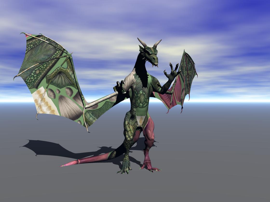 ...das liegt daran, dass du für die gesamte Drachenfigur den Bumpregler im Mateditor hochgezogen hast. Dadurch wurde die Textur, die im Mateditor angezeigt wird, auf den gesamten Drachen angewendet. z.B. haben die Flügel eine andere Textur als der Bauch usw.